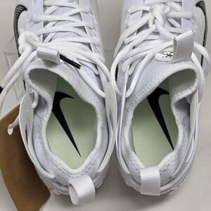 Stylish Nike football cleats in white with black accents. Perfect for the field.