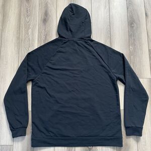 The Nike Men's Sz Medium Mock Neck Hoodie is a lightweight pullover designed with a Dri-Fit center for added breathability and comfort. This black hoodie features a solid pattern with long sleeves, a mock neck neckline, and a center Swoosh logo accent. Made from a blend of polyester and cotton, this hoodie is machine washable and suitable for various activities such as gym training, walking, basketball, and running. With a regular fit, hooded design, and convenient pockets, this Nike Sportswear hoodie is a versatile and classic addition to any man's activewear collection.