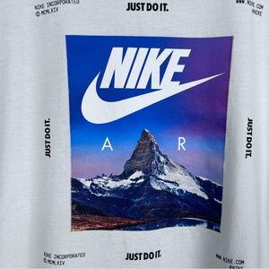 Nike Men's The Nike Tee Mountian Air Photo Center Logo Tee DX1087 Size M Graphic. Excellent Condition Men's The Nike Tee featuring Nike AIr Mountain Photo Graphic Print Logo T-Shirt.