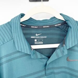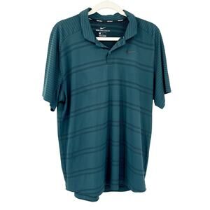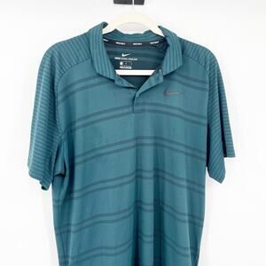 Nike Mens Tiger Woods Zonal Cooling Casual Striped Golf Polo Shirt in Green. Size Large.
