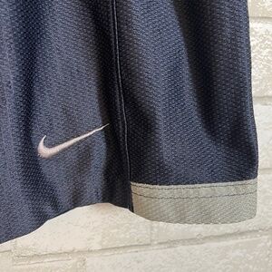 Nike Mens Training Basketball Navy Shorts. Large. Lined. Silver swoosh and accent back hem. Side pockets.