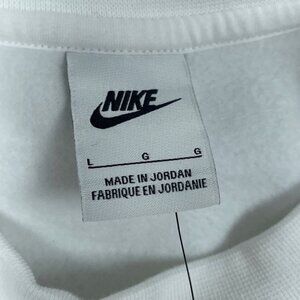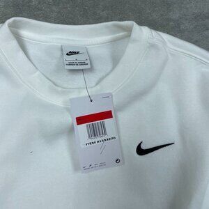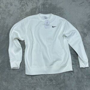 Men's Nike sweatshirt with a clean white design and black swoosh logo. Lightweight crewneck style made of a cotton-polyester blend. Brand new with tags.
