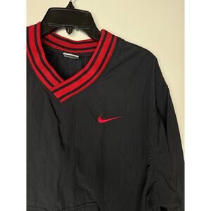Nike Men’s XL Black Red Swoosh V-Neck Windbreaker Pullover | Retro 90s Style