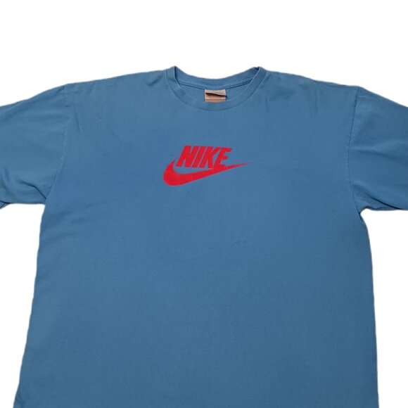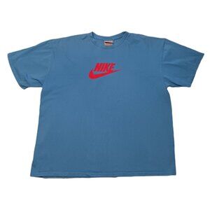 Nike Mens XL Cotton T Shirt Blue Short Sleeve Red Nike Swoosh Logo Mens XL
