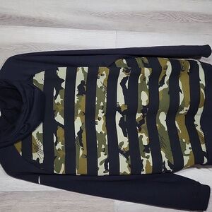 Nike Mens XL Dri Fit Pullover Hoodie Black Green Camo Stripe Army Sweatshirt