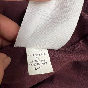 A wardrobe essential! This classic Short Sleeve Nike tee in a rich maroon/burgundy color. Men's Size X-Large. Iconic Nike Swoosh logo embroidered on left chest, Classic crew neck design. Pre-owned in excellent condition! No visible stains, holes, or major wear.