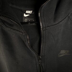 Nike black zip up hoodie with logo and drawstring. Black logo on front. Mens size large.