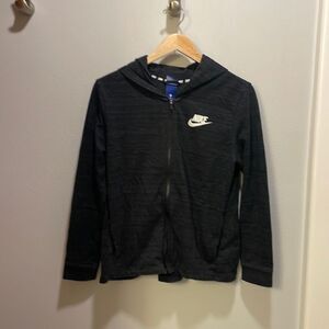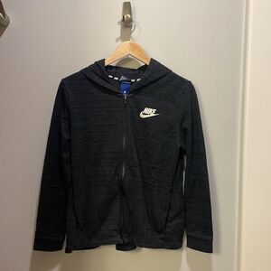 Nike Mens gray zip up sweatshirt. It’s a size Medium. It’s super cute and in good condition. It has two front pockets.