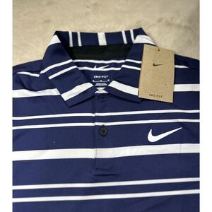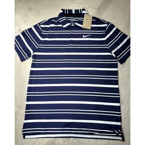 Nike Men's medium Golf Dri-FIT Blue & White Stripped Polo shirt top FQ2322 NEW