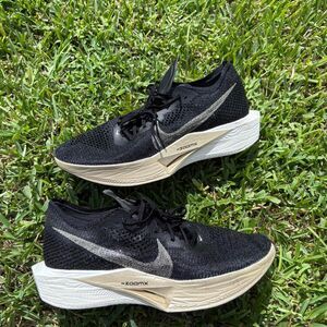black metallic, running sneakers, vaporfly, athletic shoes, performance footwear, lightweight, breathable, cushioned, grip sole, modern design