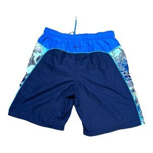 Nike Mens Large Blue Board Shorts Swim Trunks Floral Drawstring Bathing Suit
