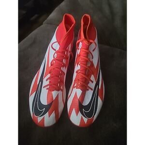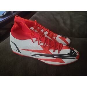 This is a used but cleaned good condition pair of nike red and white cr7 mercurial size 13 soccer cleats.