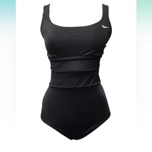 Nike Mesh Solid Edge V-Back One Piece Swimsuit, Black, Medium - NWT