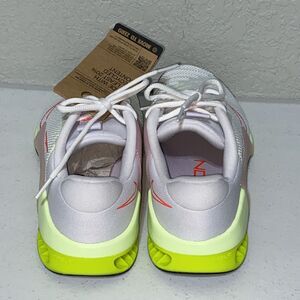 Nike Metcon 9 Women's Training Shoes in size 8.5 feature a lace-up closure and a low-top silhouette. The white shoes with green accents are designed for CrossFit and training, with arch support, cushioning, and slip-resistant outsoles. The mesh upper provides breathability, while the foam insoles offer comfort during workouts. The shoes bear the Nike logo and are ideal for activities like weightlifting, bodybuilding, and cross-training. Brand new with box. Please see pictures for details.