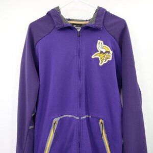 Nike Minnesota Vikings NFL Onfield Apparel Zip Up Jacket Purple Logo Therma Fit Hooded Size Large