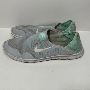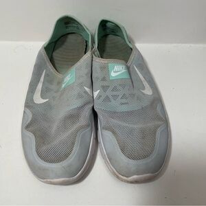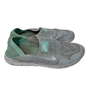 Gently worn women's size 9.5 nike mint green breathable slip on comfort insole walking shoes. Please review all photos for any signs of wear-pictured as is. Disclaimer: Any items with any wear/staining has not been treated, and unsure of ability to remove/treat condition. Comes from a smoke free home, bundle with other items to save & minimize shipping cost.