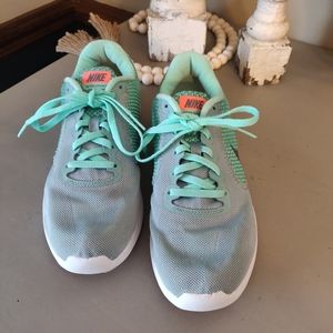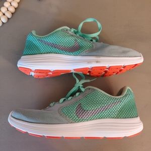 Nike Mint Green/Grey Swoosh Revolution 3 Sneaker - Size 8. Excellent pre-owned condition!