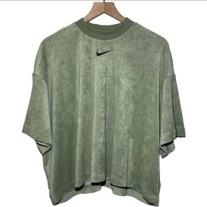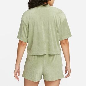 Nike Mock Neck Short Sleeve Terry Top in Oil Green