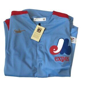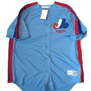 Nike Montreal Expos Full Button Jersey Men's Size L Cooperstown Collection Blue