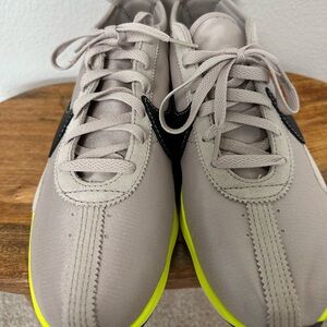 Brand New! Never worn! Beautiful Beige, Black & Neon Yellow Sneakers! Retro Inspired Running Style from Nikes 1972 Moon Shoe. Lightweight and comfortable!