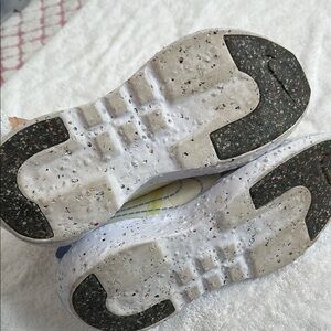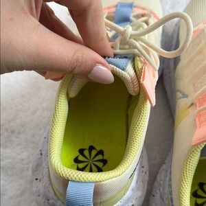 Stylish Nike sneakers with a multicolor design. Features cream, blue, and orange accents. Perfect for casual wear.
