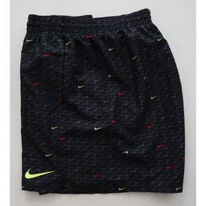 Nike NESSC485-001 Men's Sz 2XL Black Swoosh All-Over Print 5" Swim Shorts