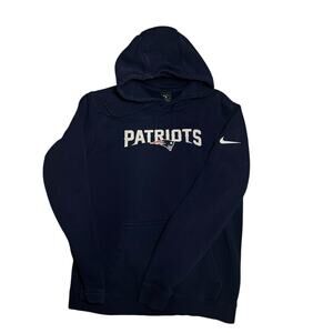 The Nike New England Patriots Hoodie is a men's medium blue sweatshirt featuring the official logo of the National Football League (NFL) team. Made by Nike, the hoodie is machine washable and designed for casual occasions. Perfect for football fans, this sweatshirt showcases the classic sporty theme with the iconic team colors. This officially licensed garment is a must-have for any New England Patriots supporter looking to show their team pride.