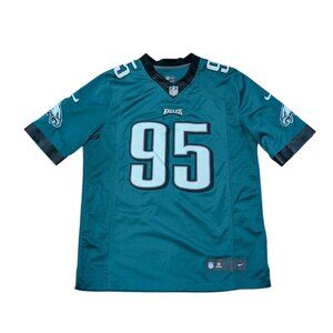 The Nike NFL OnField Philadelphia Eagles Mychal Kendricks Swingman Jersey in Men's size L is an officially licensed product perfect for any Eagles fan. Made by Nike, this green jersey features the player's name and number, making it a great addition to any football memorabilia collection. This jersey is specifically designed for the regular season, making it a must-have item for fans looking to show their support for the Philadelphia Eagles during game day.