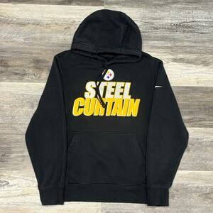 Nike NFL Pittsburgh Steelers Steel Curtain Black Mens Medium Pullover Hoodie EUC Center Spellout & Logo