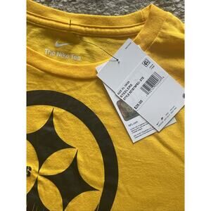 The product is a Nike NFL Steelers T-shirt in size Youth XL, featuring the official logo and colors of the Pittsburgh Steelers. The shirt is designed for young fans of the National Football League and is perfect for showing support for the team during games or casual wear. Made by the trusted brand Nike, this shirt is a stylish and comfortable way for young football enthusiasts to represent their favorite team.