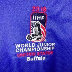 World Junior Championship 2018 NHL officially licenced Nike windbreaker jacket in the color blue. NWT size Large, adult men's.