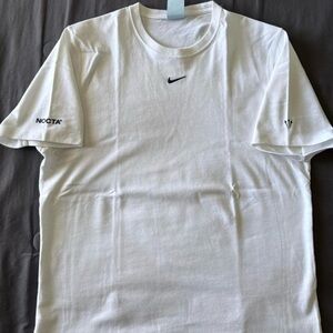 Nike Nocta white tshirt men’s size medium. Pre-owned excellent close to mint condition. Worn a handful of times. Has more than plenty of life left! Can’t really see in pictures but lettering is navy blue color.