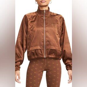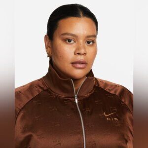 This is a Nike NSW Air DZ zip-front jacket in brown, size 3X. Made from 100% polyester with a lightweight satin-gloss finish, it delivers a sporty yet elevated look — perfect for streetwear styling.