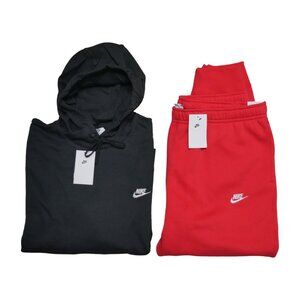 Nike NSW Club Fleece Men's Size 3XL Sweatsuit Matching Outfit Hoodie Joggers Set Red Black