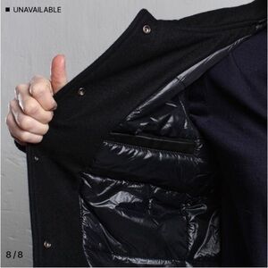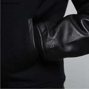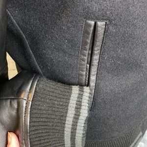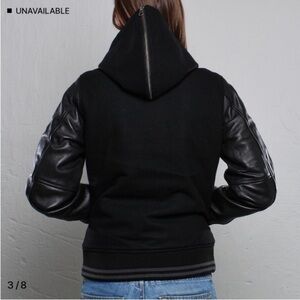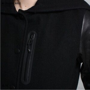 Nike NSW Black Leather Wool Hooded Destroyer Varsity Bomber Jacket - Size: Small