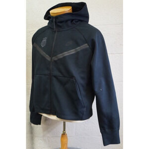 The Nike NWSL Windrunner US Hockey Cropped Tech Fleece Full Zip Hoodie in size Large is a stylish and comfortable activewear piece perfect for women who love to stay active during the colder seasons. This black hoodie features a solid pattern with a long sleeve design and a zip closure for easy wear. Made from cozy fleece fabric, it is machine washable for easy care and maintenance. The hoodie is adorned with the Nike Windrunner logo, making it a sporty and trendy addition to your wardrobe. Perfect for winter, fall, or spring, this Nike hoodie is a versatile and high-quality choice for any outdoor activity.