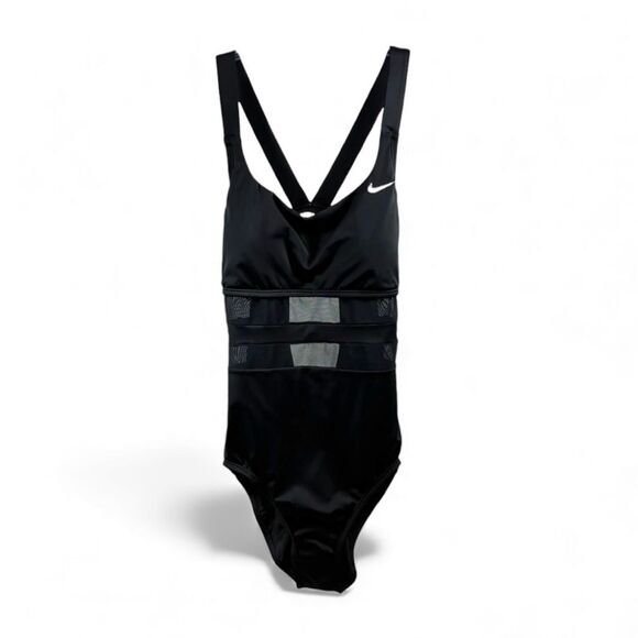 Nike NWT Swim One Piece Sheer Mesh Detailing in Black Size L