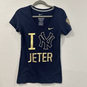 Nike NY Yankees Derek Jeter Captain #2 Women's Medium Slim Fit Navy Blue T-Shirt