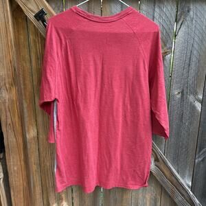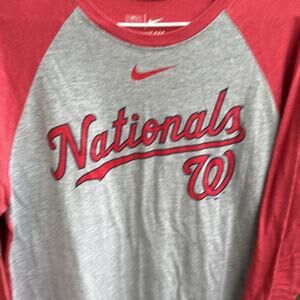 Nike baseball tee with Nationals logo. Red sleeves and gray body.