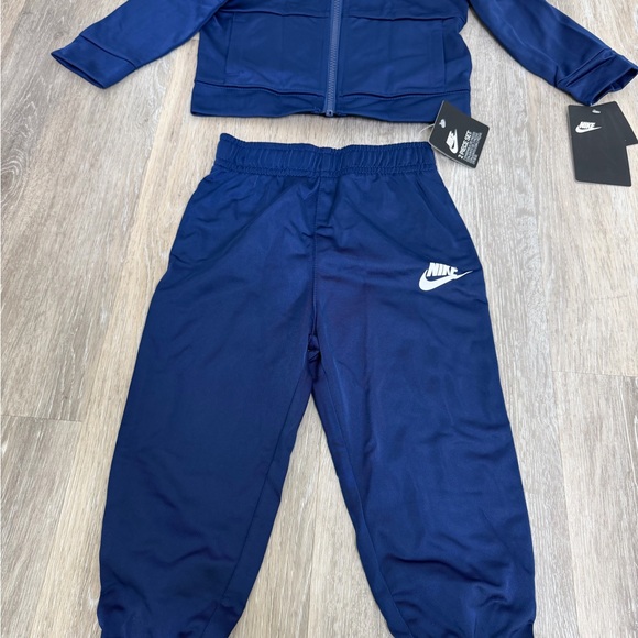 Navy athletic set with Nike branding. Includes zip-up jacket and pants.