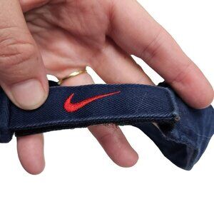 Nike Navy Blue Adjustable Visor Hat Hook Loop Closure Red swoosh