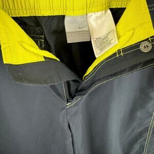 Nike Navy Blue Yellow Trim Elastic Waist Cropped High Rise Track Pants Size L