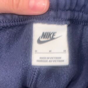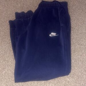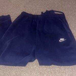 Stylish navy joggers featuring a white Nike logo. Perfect for casual wear.