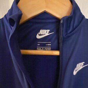 NIKE Navy Tricot full zip coverall 100% Polyester Nike logo down the sides Size: 12M Very good pre-owned condition