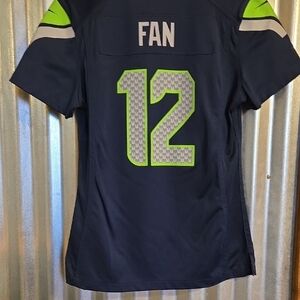 Women's Seahawks jersey by Nike. Features number 12. Navy with green and gray details. Worn once or twice. Size S.