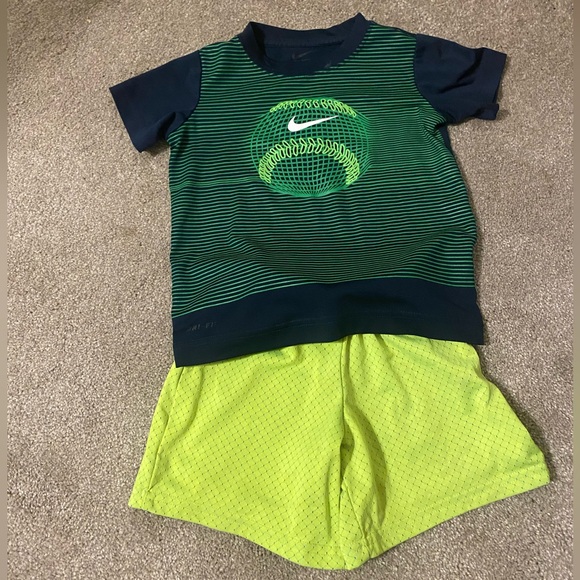 The shorts aren’t Nike but they matched the shirt perfect I believe they are from Marshall’s. 4T no flaws or stains smoke and pet free home