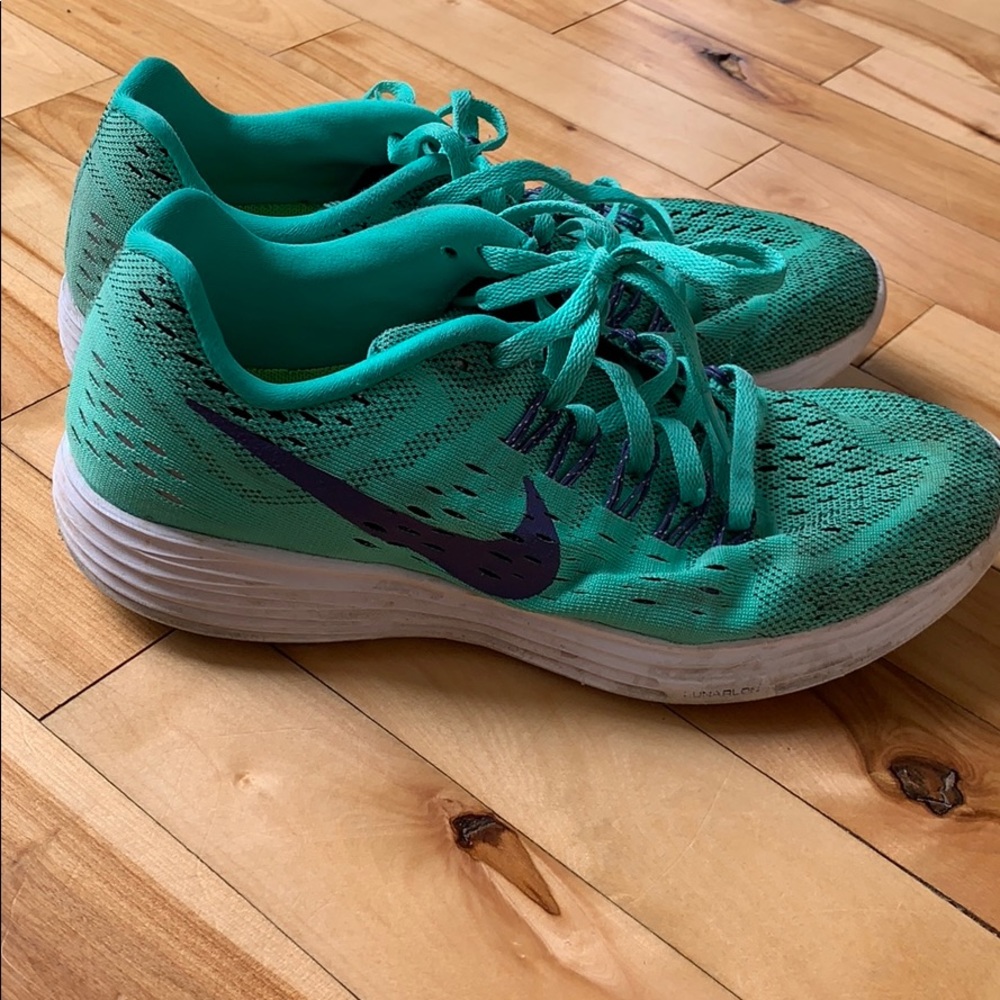 Women’s, size 7.5, teal and purple. Worn but still has some wear left in them!