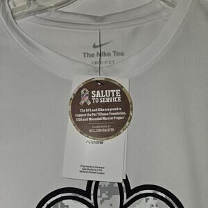 This Nike New Orleans Saints shirt is part of the official NFL Team Apparel Salute To Service collection. The white shirt features the team's logo and is in size Youth Large 14/16. Show your support for the New Orleans Saints with this officially licensed football apparel from Nike.