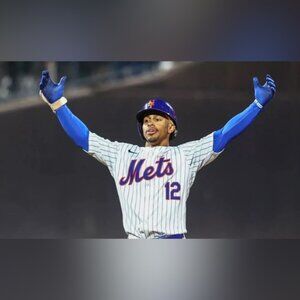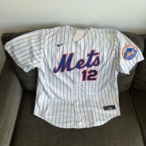 Nike New York Mets Francisco Lindor #12 Pinstripe with Patch Jersey Men’s Sz: XL