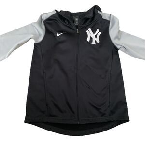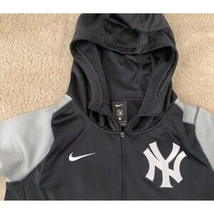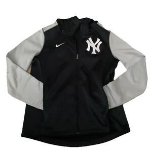 Nike New York Yankees Womens Jacket Zip Up Hooded Black Gray Size Small NY Logo